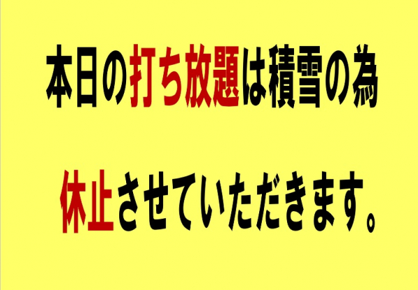 打ち放題休止のお知らせ