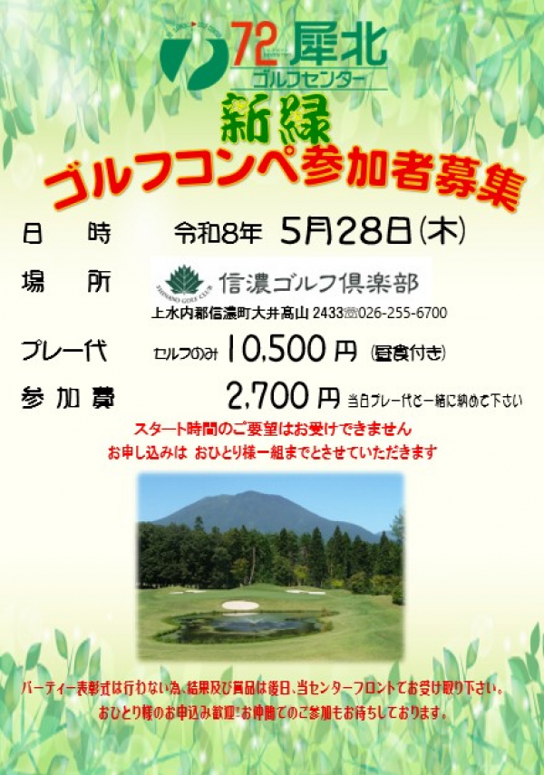 2026新緑ゴルフコンペのお知らせ